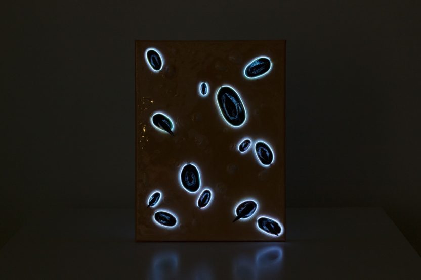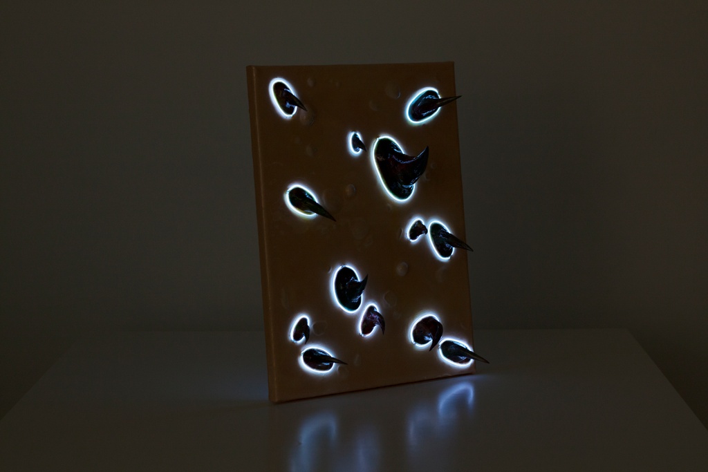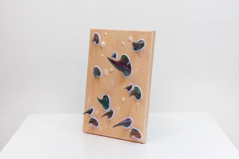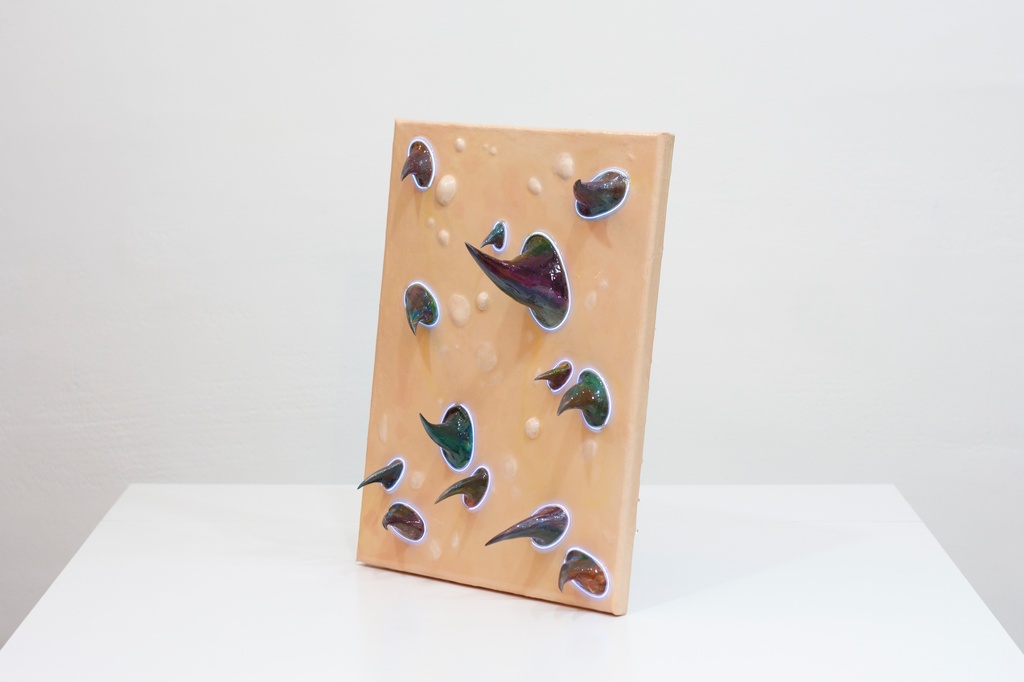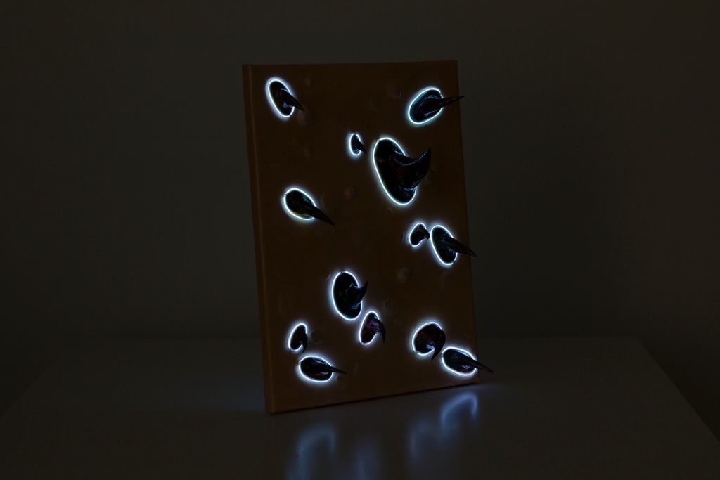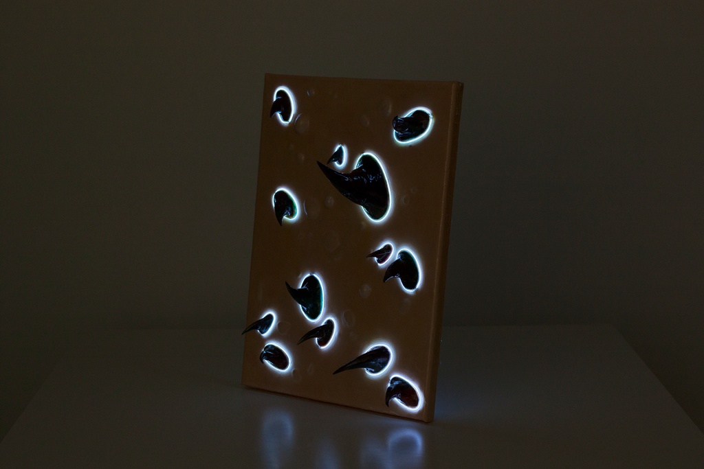 Acrylic on Canvas, EL-wire Lighting, Paper clay, Resin